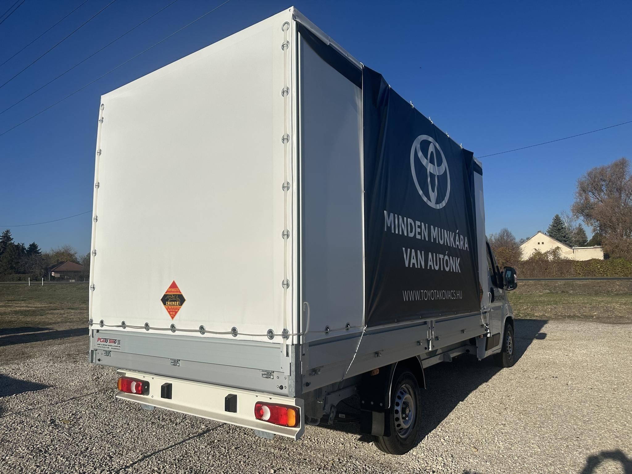 Platós felépítmény fő méretei ( külső / belső ):hossz 4260 / 4200 mmszélesség 2160 / 2100 mmmellfal / oldalfal magasság 500 / 400 mmKivitel: - alumínium osztott eloxált oldalfal, oldalvégzárakkal szerelve,- elöl-hátul fix, középen kivehető zártszelvény rakoncák tűzihorganyozva,- 15 mm-es csúszásmentes impregnált műanyag bevonatú padló,- hegesztett acél segédváz tüzihorganyozva, eloxált alumínium szegővel,- műanyag sárvédő sárfogó gumival, hátsó fellépő jobb oldalt,- kétkapus ponyvaváz, középen kivehető támasztó lábbal rakoncába tűzve,- 4 sor fenyő léc,- 2100 mm belmagas fehér(RAL9016) belföldi ponyva, jobb oldalon elhúzható ponyvázat racsnisfeszítőkkel, bal oldalon és hátul oszlopokon hagyományos szíjas lefűzés, alul körbe TIR zsinór,- 2-2 db LED sárga oldalhelyzetjelző,- 4 pár rakományrögzítő keretbe szerelve egyenletes elosztásban,- fehér ragasztott tető légterelő- engedélyeztetve |